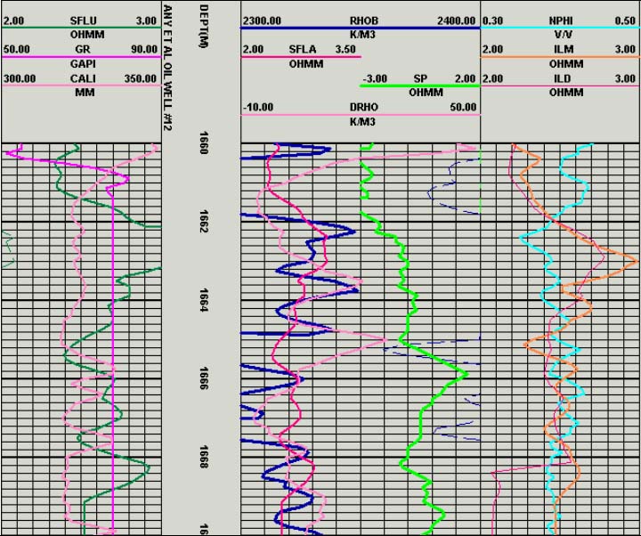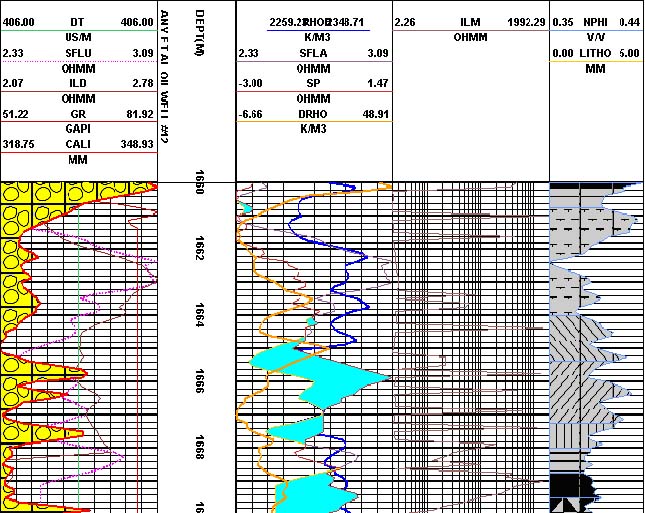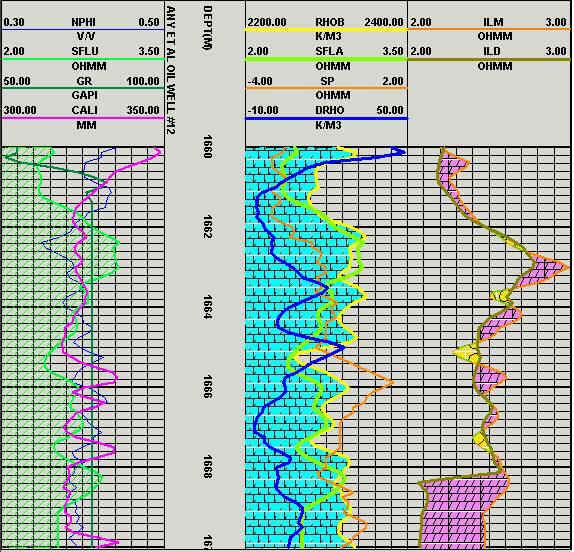 Multiple tracks and curves with linear and                 cross plot with cross filling pattern